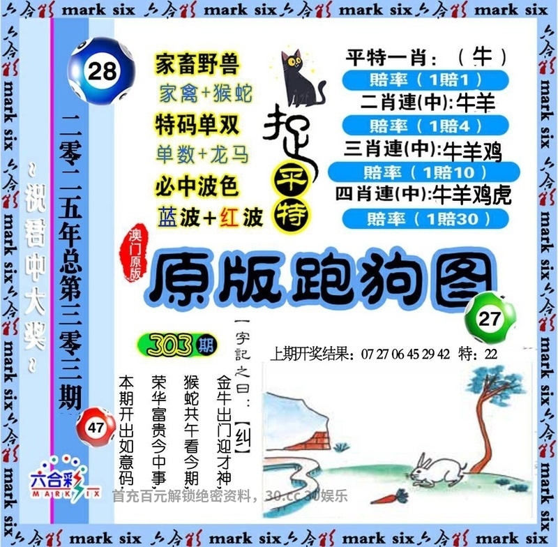 305期七肖蛇狗兔鸡鼠牛马开:發00